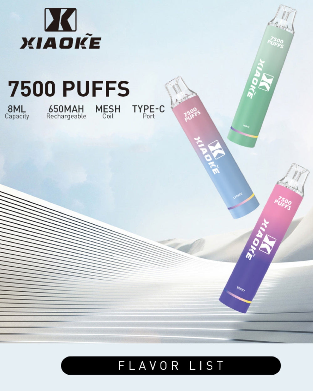 梟客XIAOKE 7500口 大容量一次性拋棄式電子煙是一款兼具高性能與便捷性的創新產品,專為追求簡單、高效吸煙體驗的用戶設計。梟客電子煙採用超大容量設計,內置高品質煙油,能提供高達7500口的持久使用,遠超傳統一次性電子煙的使用壽命。無需充電或更換配件,用完即拋,真正實現零維護,方便又省心。 產品規格: 電子煙容量:7500口 尼古丁濃度:可選0mg、3mg、5mg 可選口味:煙草、薄荷、水果系列(如葡萄、芒果、草莓等) 充電方式:Type-C充電接口 設備設計:拋棄式,一次性使用 使用方法: 打開包裝,取出電子煙; 無需充電,直接吸入即可開始使用; 使用完畢後,請將其丟棄,並可選擇下一個口味的設備繼續使用。